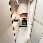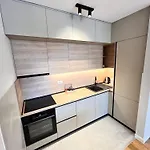 Eine Küche verfügt über einen Kühlschrank, einen Herd und einen Geschirrspüler, die für ein komfortables Kochen im Apart 28- Luxury Suites angeboten werden. Gäste können die Unterkünfte mit dem Auto vom Flughafen Podgorica in 20 Minuten erreichen.